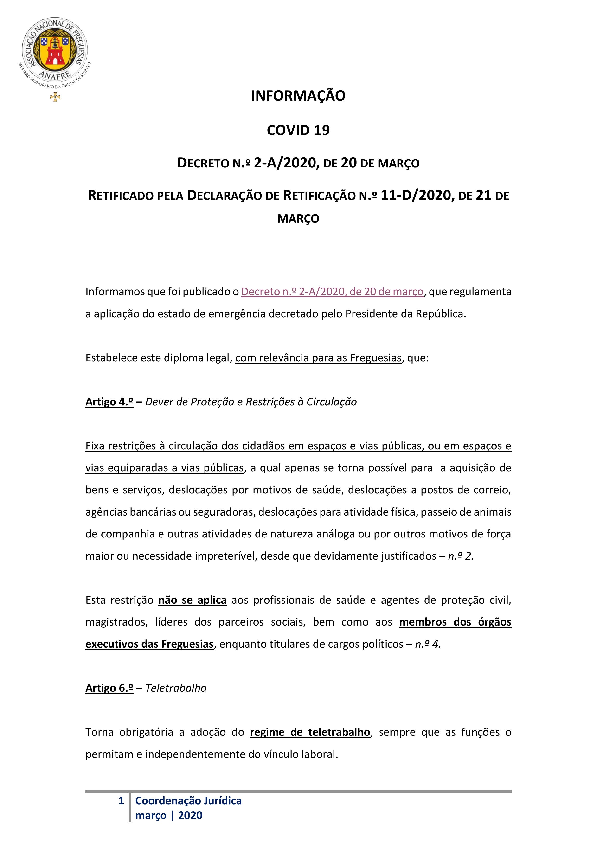 Informação ANAFRE | DECRETO N.º 2-A/2020