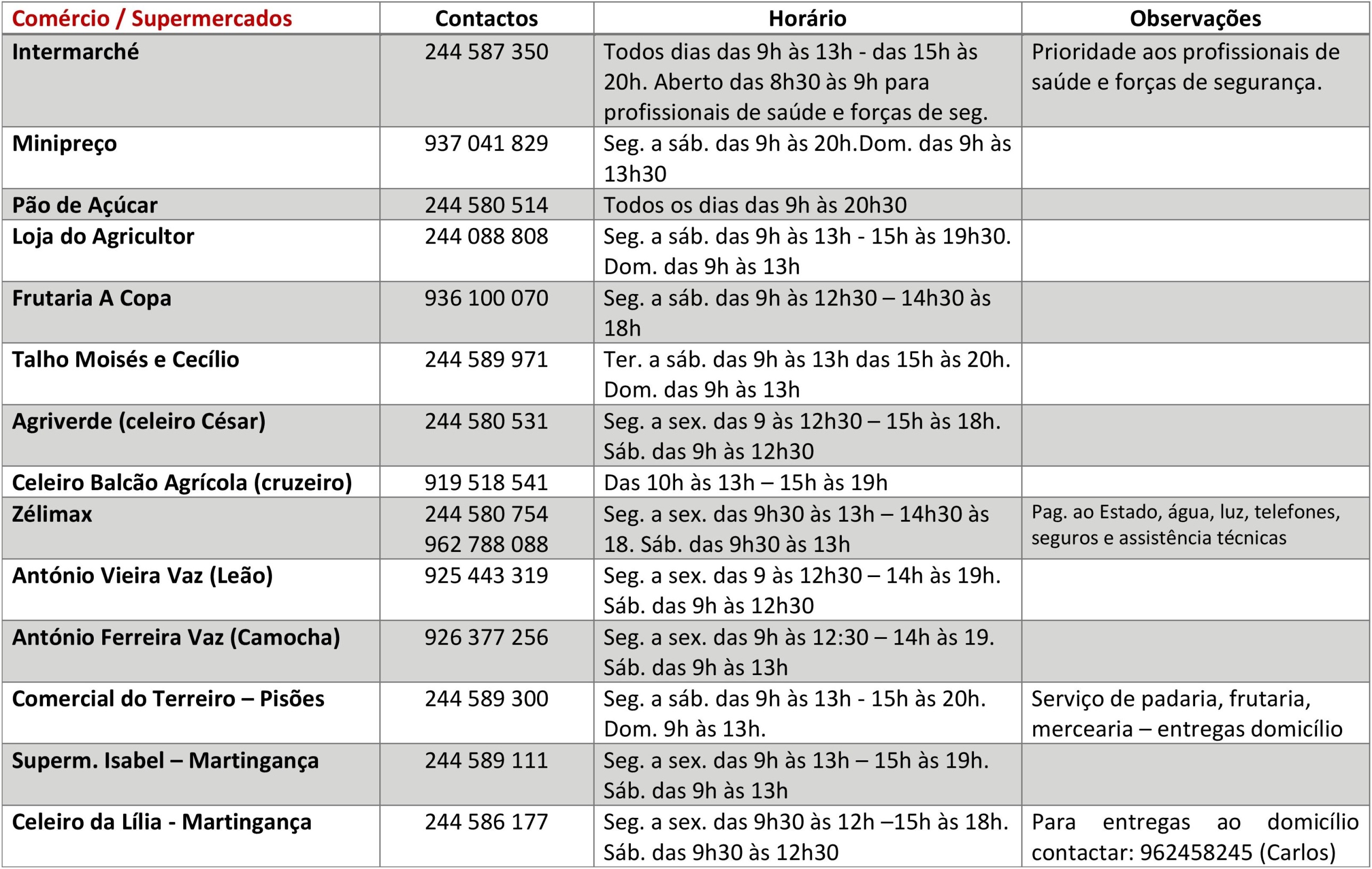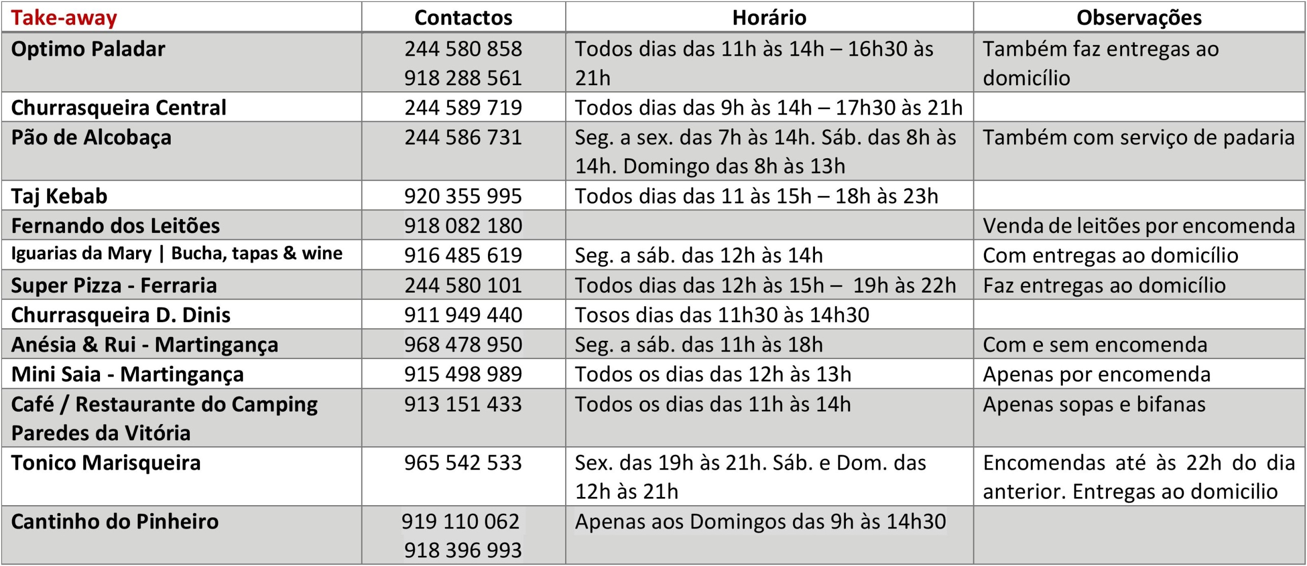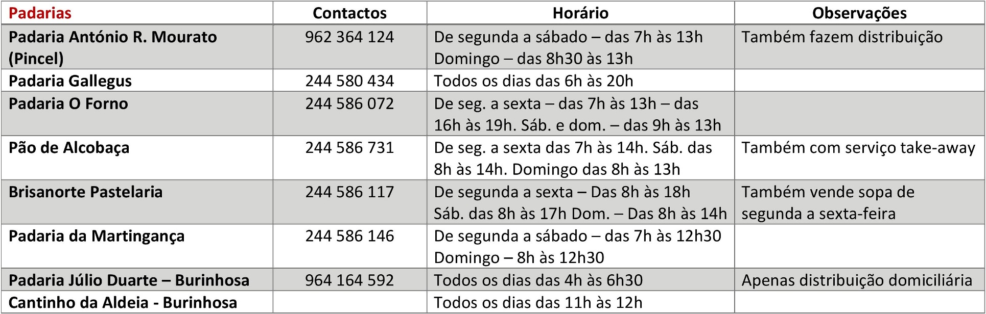 Saiba aqui os contactos e horários de funcionamento dos restaurantes, padarias, supermercados, comércio, serviços e de outras instituições.