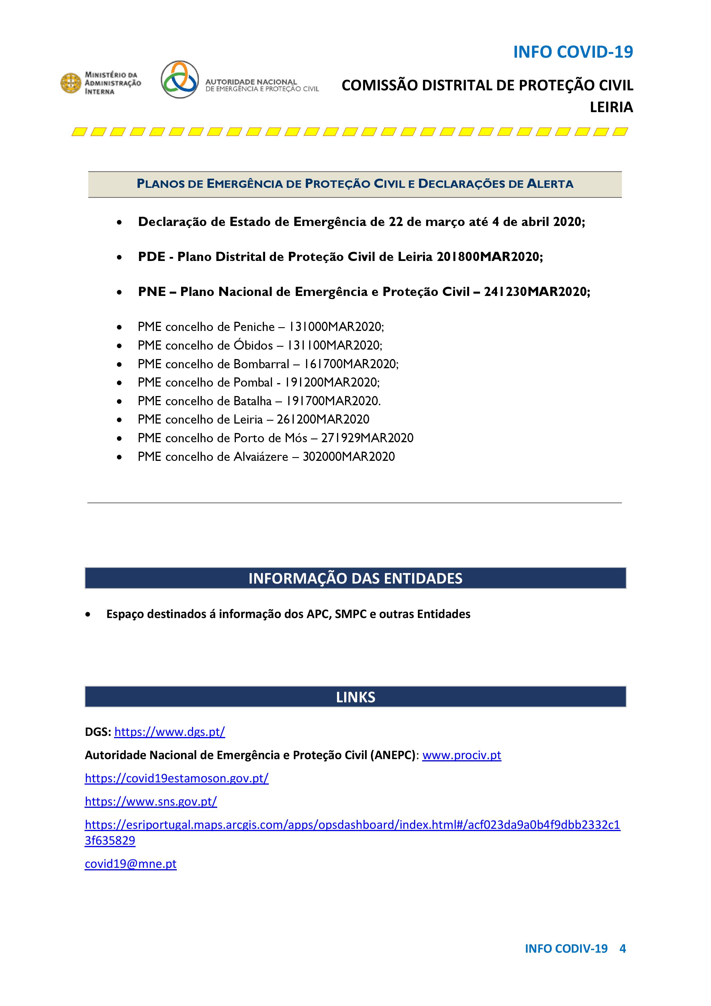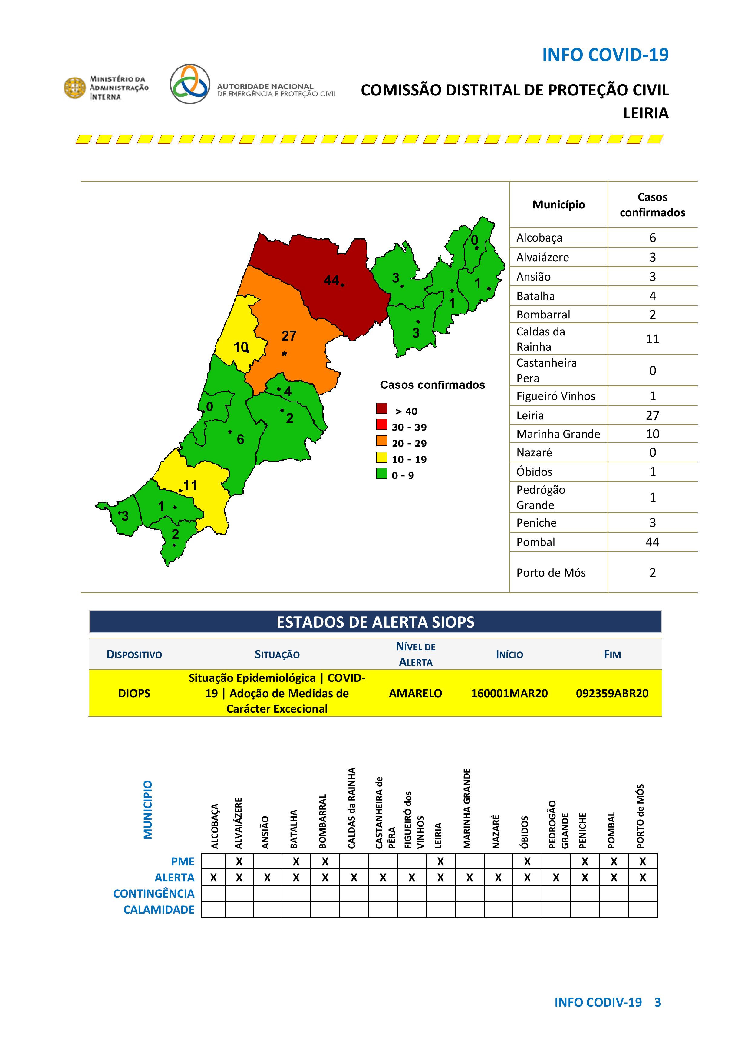 > Boletim da Comissão Distrital de Proteção Civil de Leiria de 2.4.2020