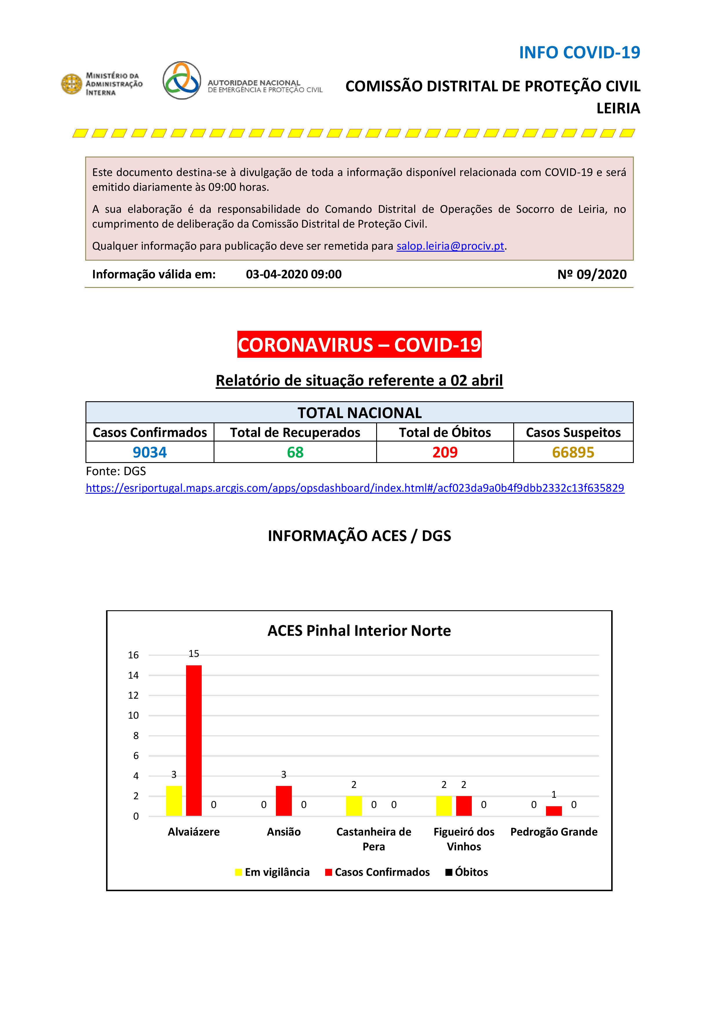 > Boletim da Comissão Distrital de Proteção Civil de Leiria de 3.4.2020