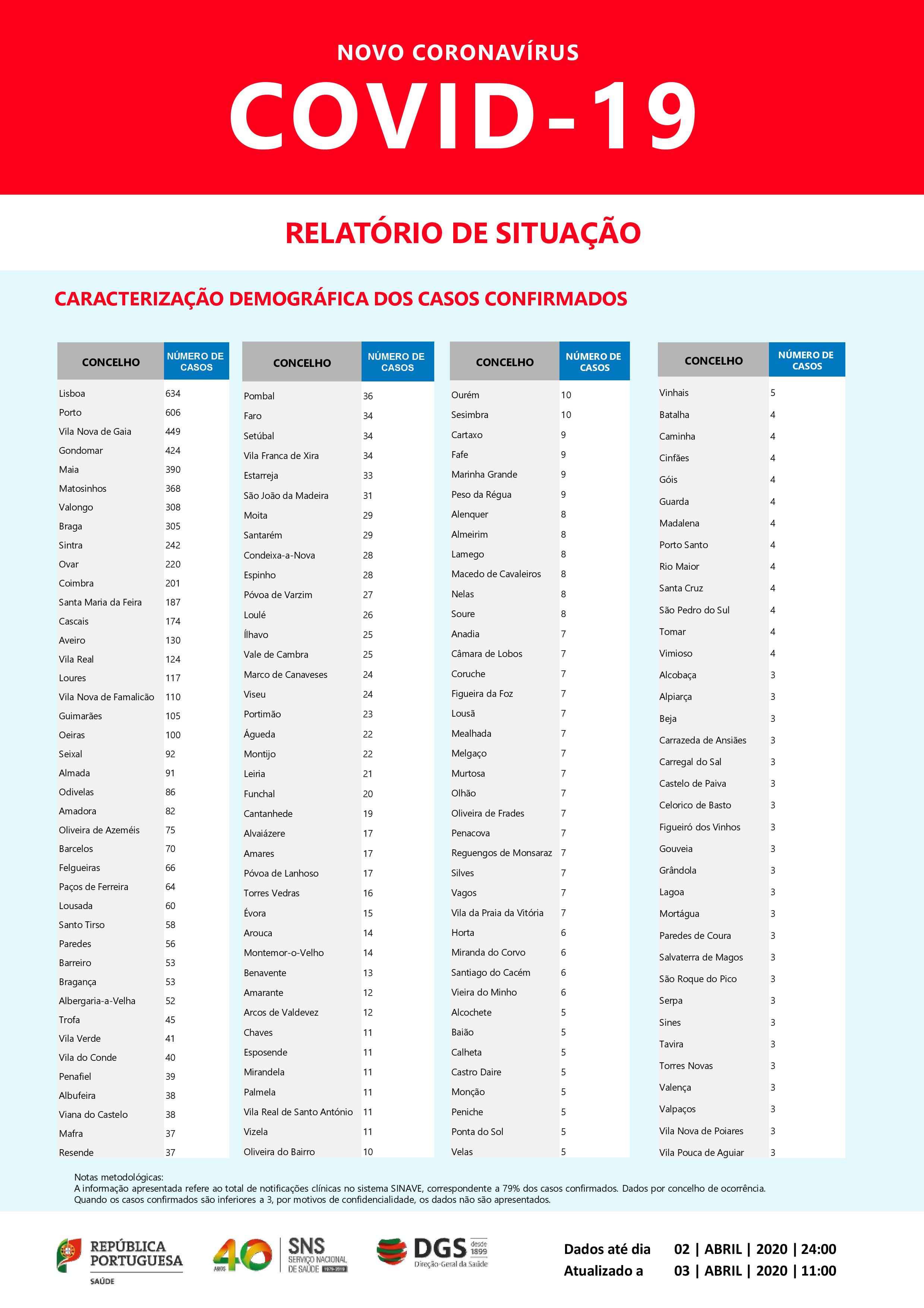 DGS: Relatório de situação de 3.4.2020
