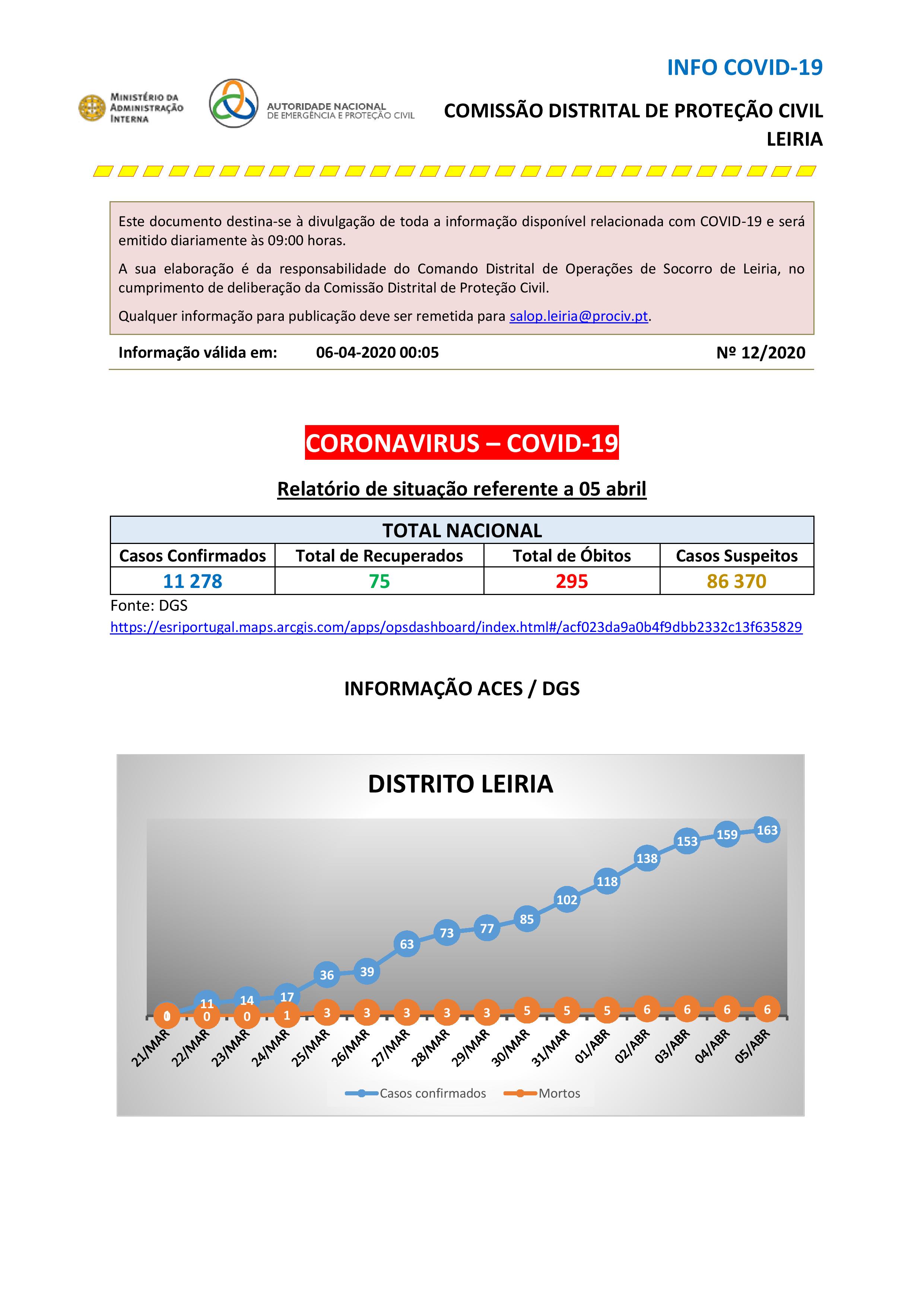 > Boletim da Comissão Distrital de Proteção Civil de Leiria de 6.4.2020
