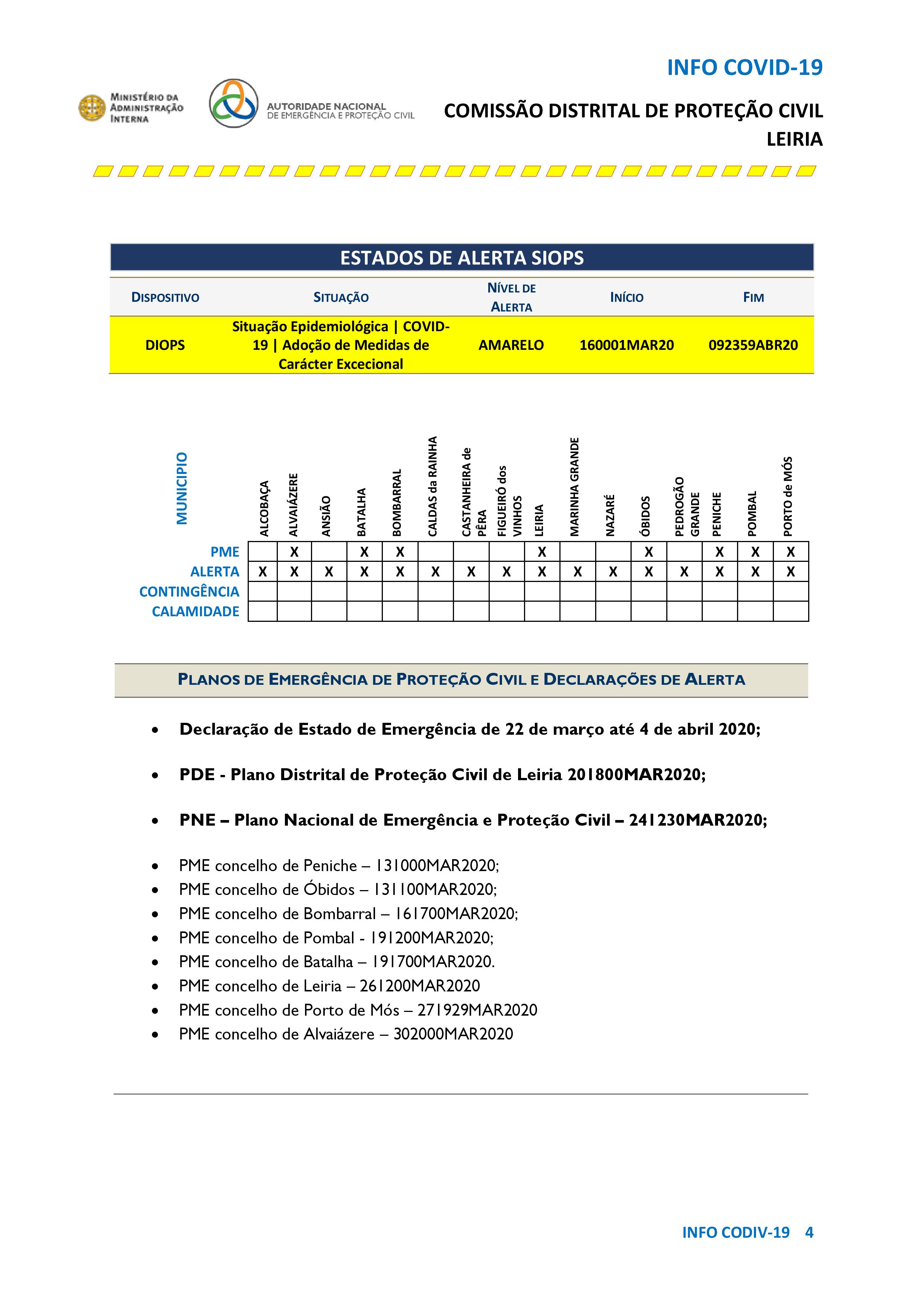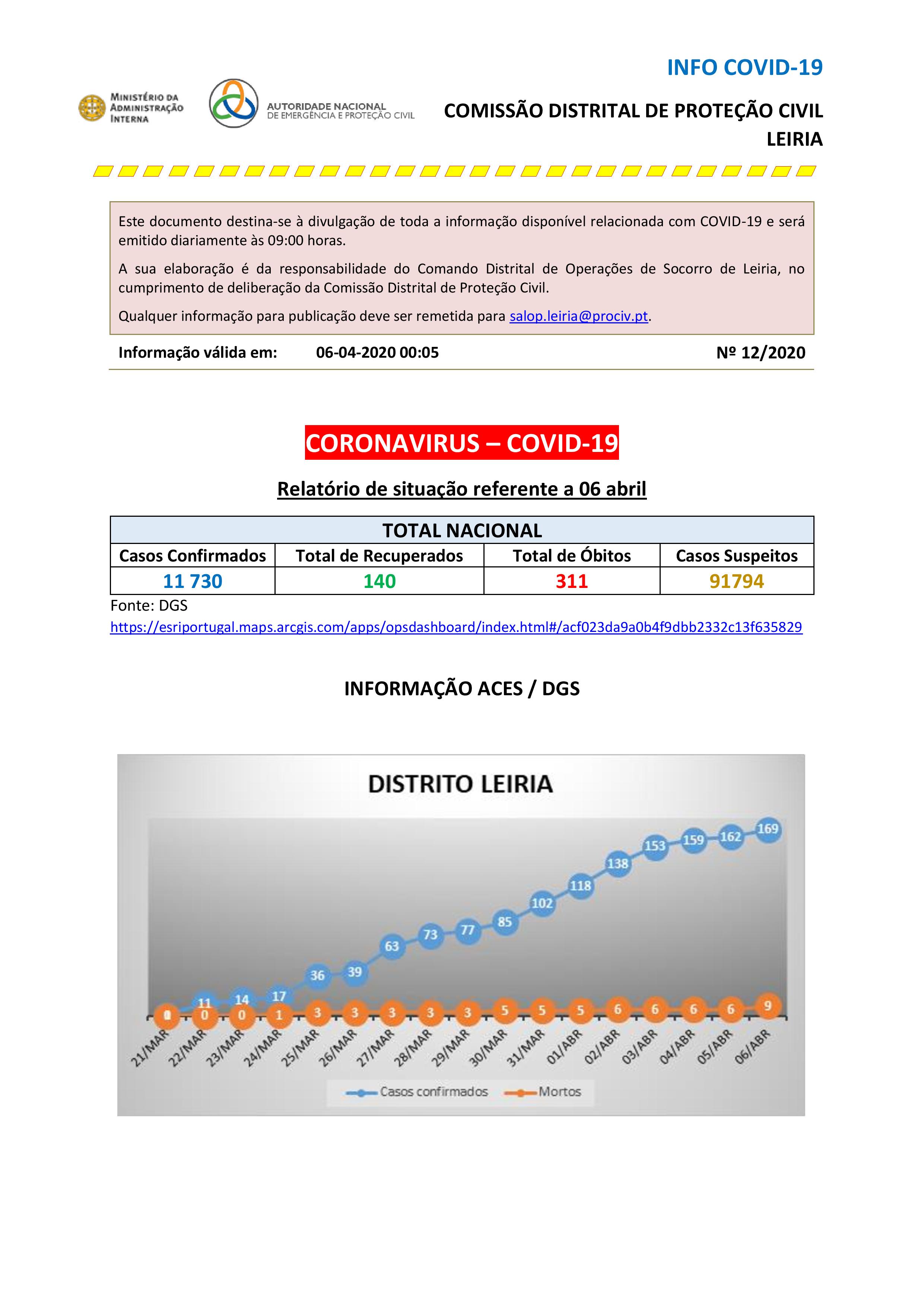 > Boletim da Comissão Distrital de Proteção Civil de Leiria de 7.4.2020