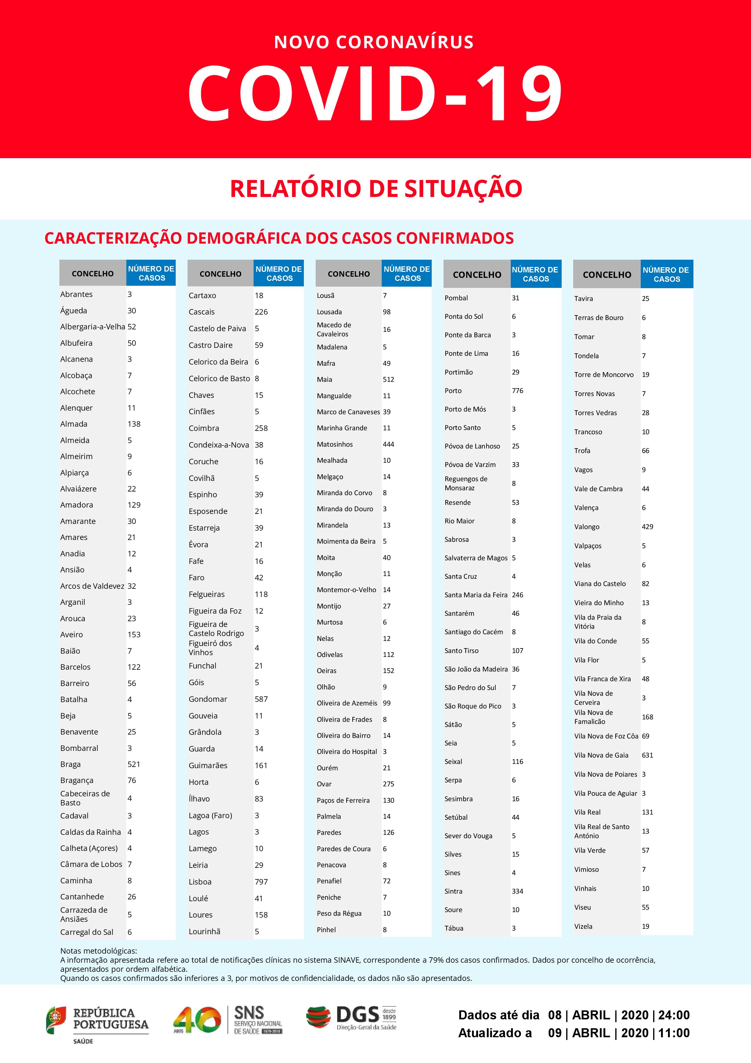 DGS: Relatório de situação de 9.4.2020