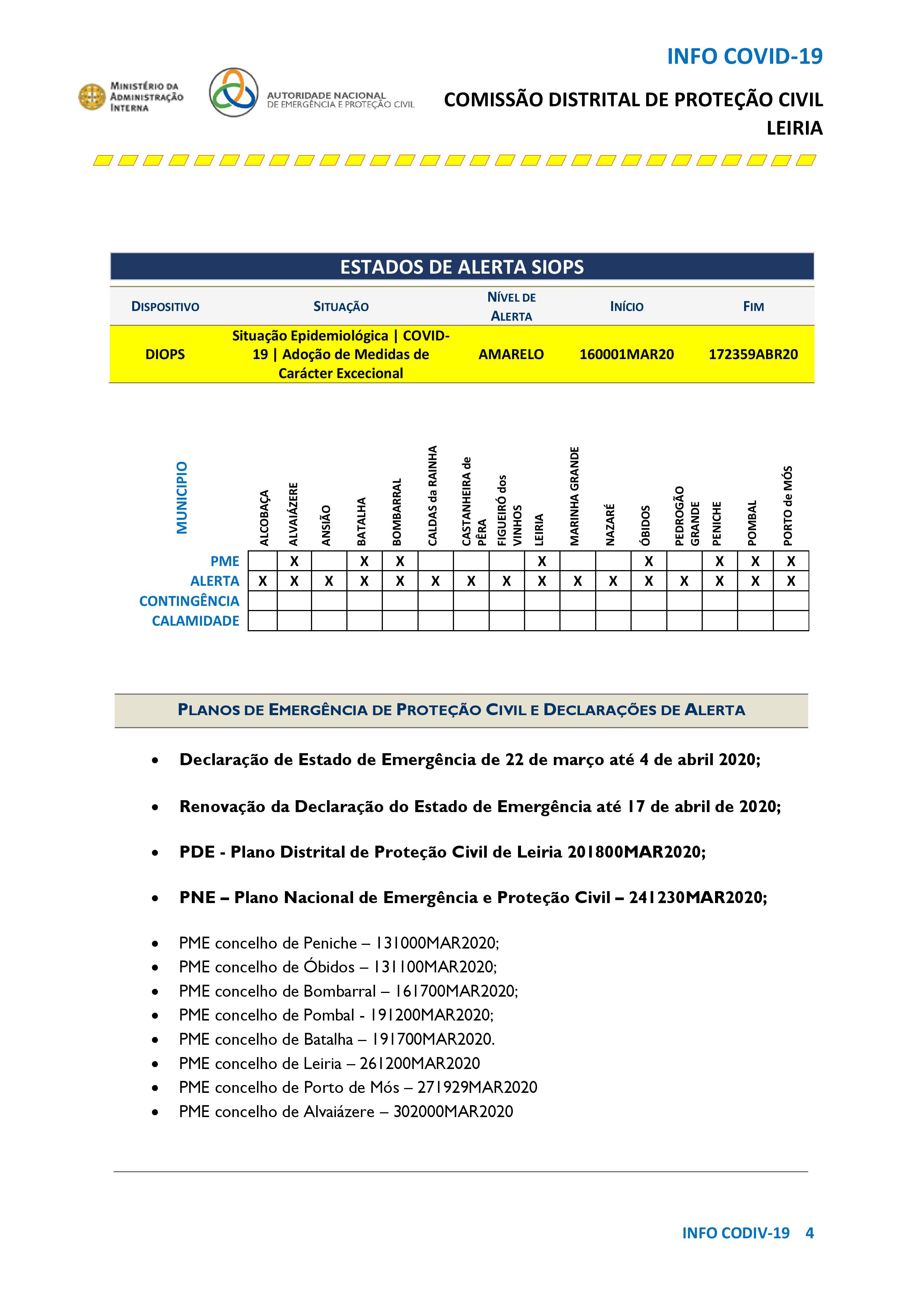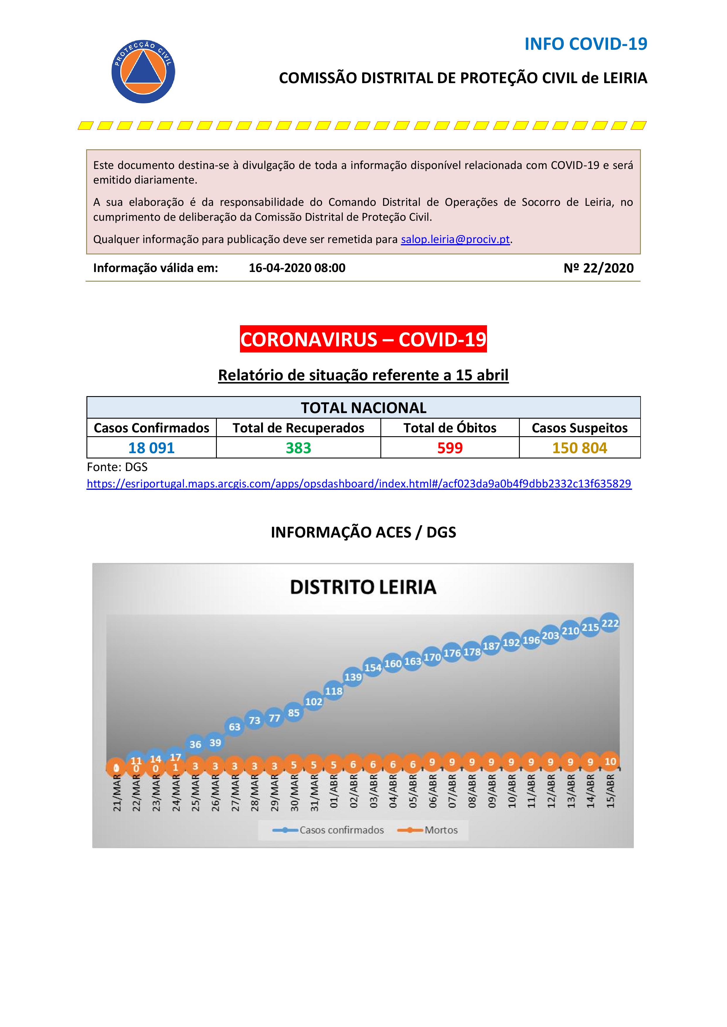 Boletim da Comissão Distrital de Proteção Civil de Leiria de 16.4.2020