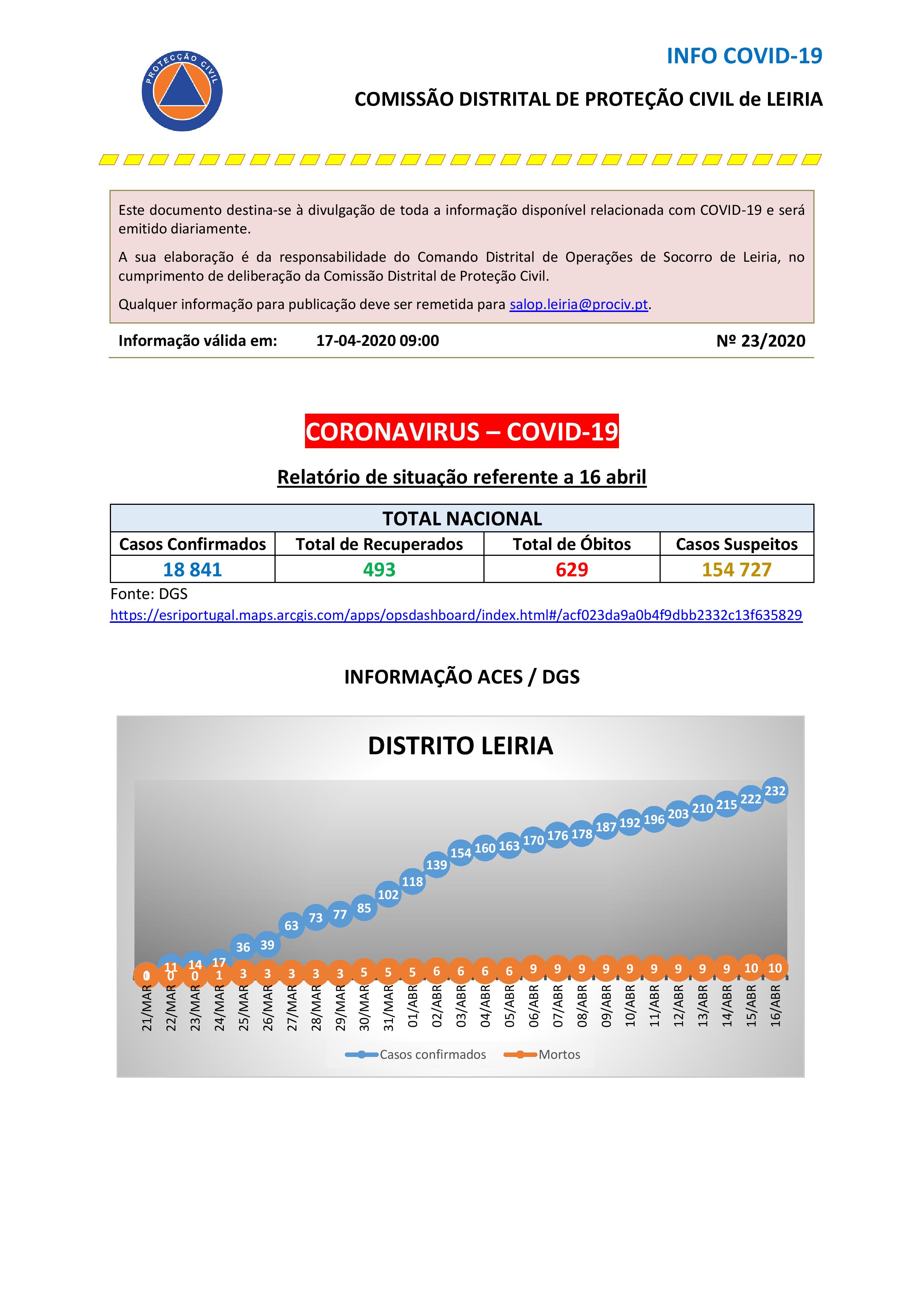 Boletim da Comissão Distrital de Proteção Civil de Leiria de 17.4.2020