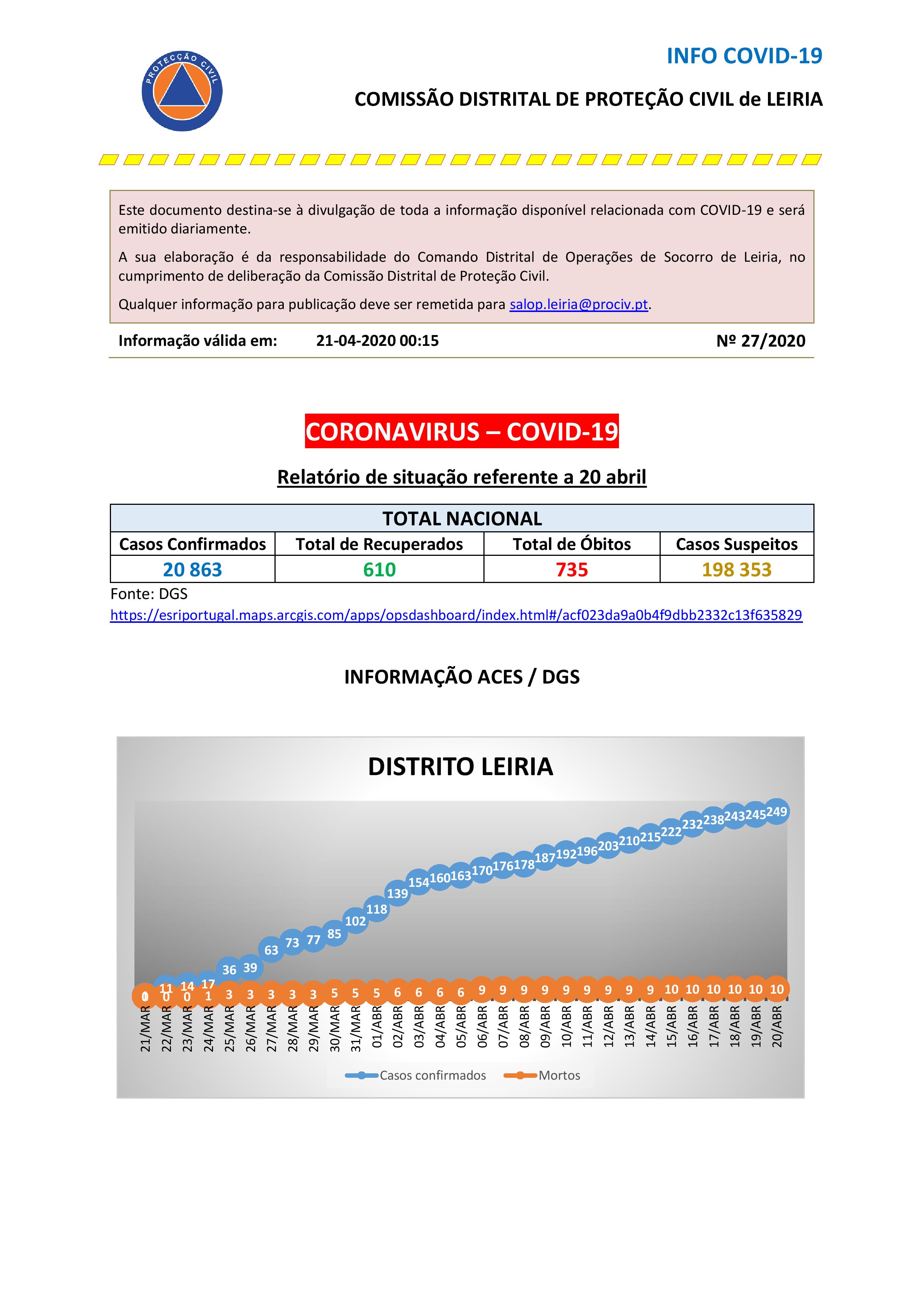 Boletim da Comissão Distrital de Proteção Civil de Leiria de 21.4.2020