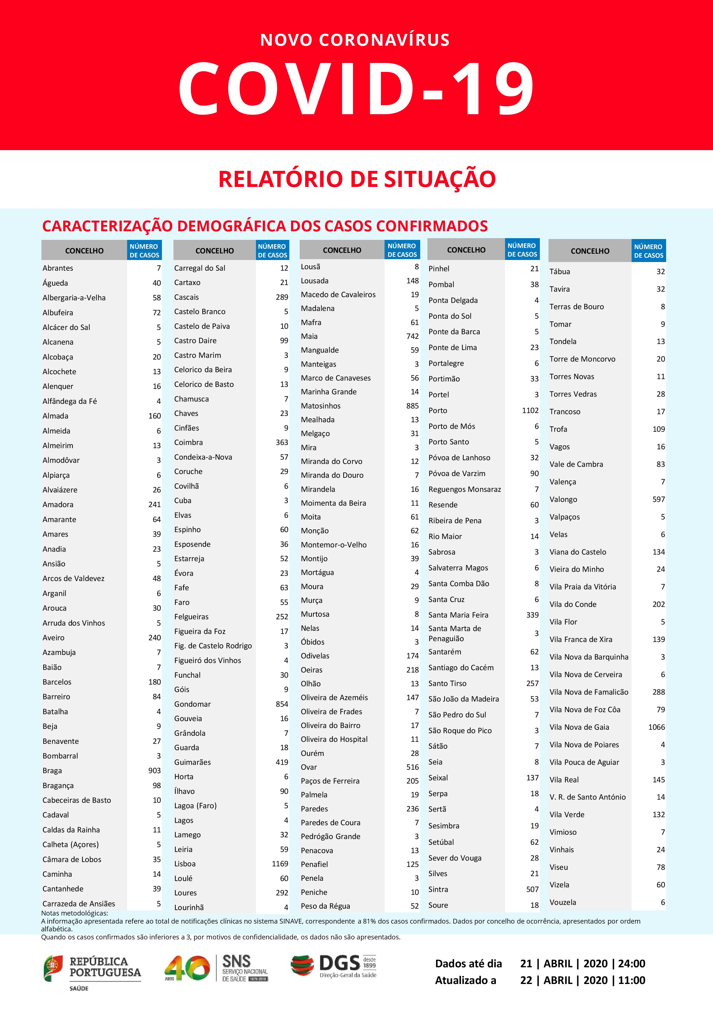 DGS: Relatório de situação de 22.4.2020