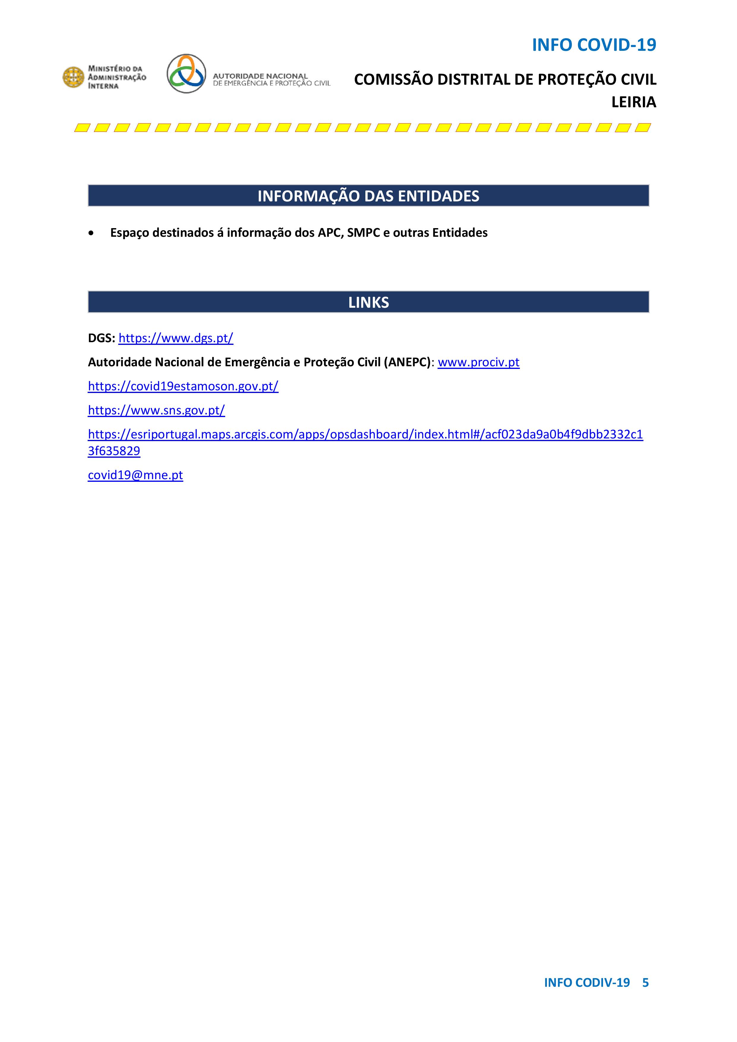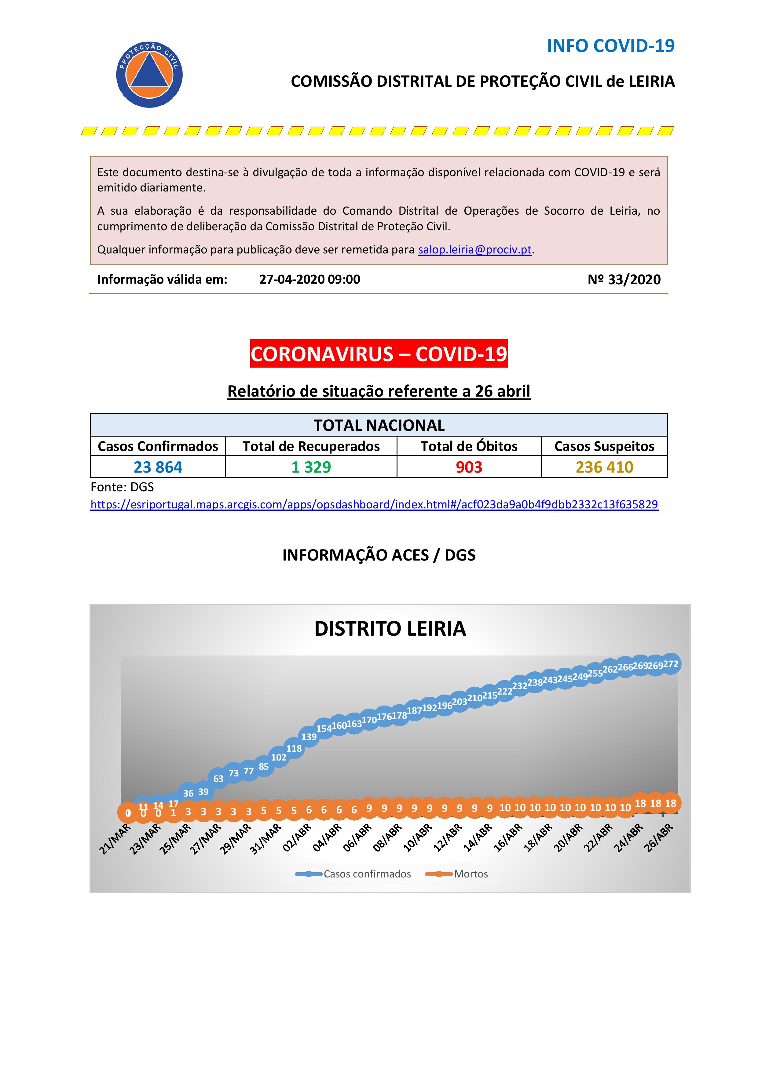 > Boletim da Comissão Distrital de Proteção Civil de Leiria de 27.4.2020