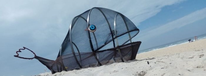 A estrutura de ferro e redes em forma de baleia, imagem do projeto Caça-plásticos, nascido no ano passado e desenvolvido pelo Exploratório – Centro Ciência Viva de Coimbra, está de volta às praias das Paredes da Vitória e de São Martinho do Porto, ambas no concelho de Alcobaça.