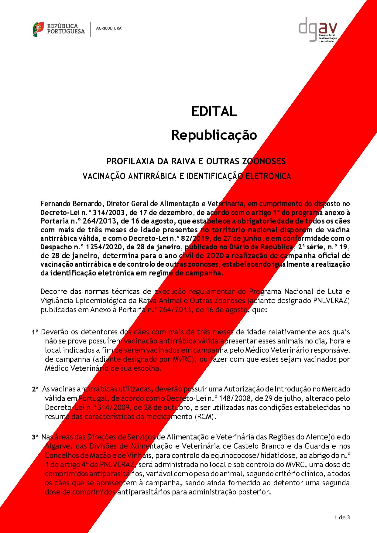 > Campanha de Vacinação Anti-Rábica e Identificação Eletrónica