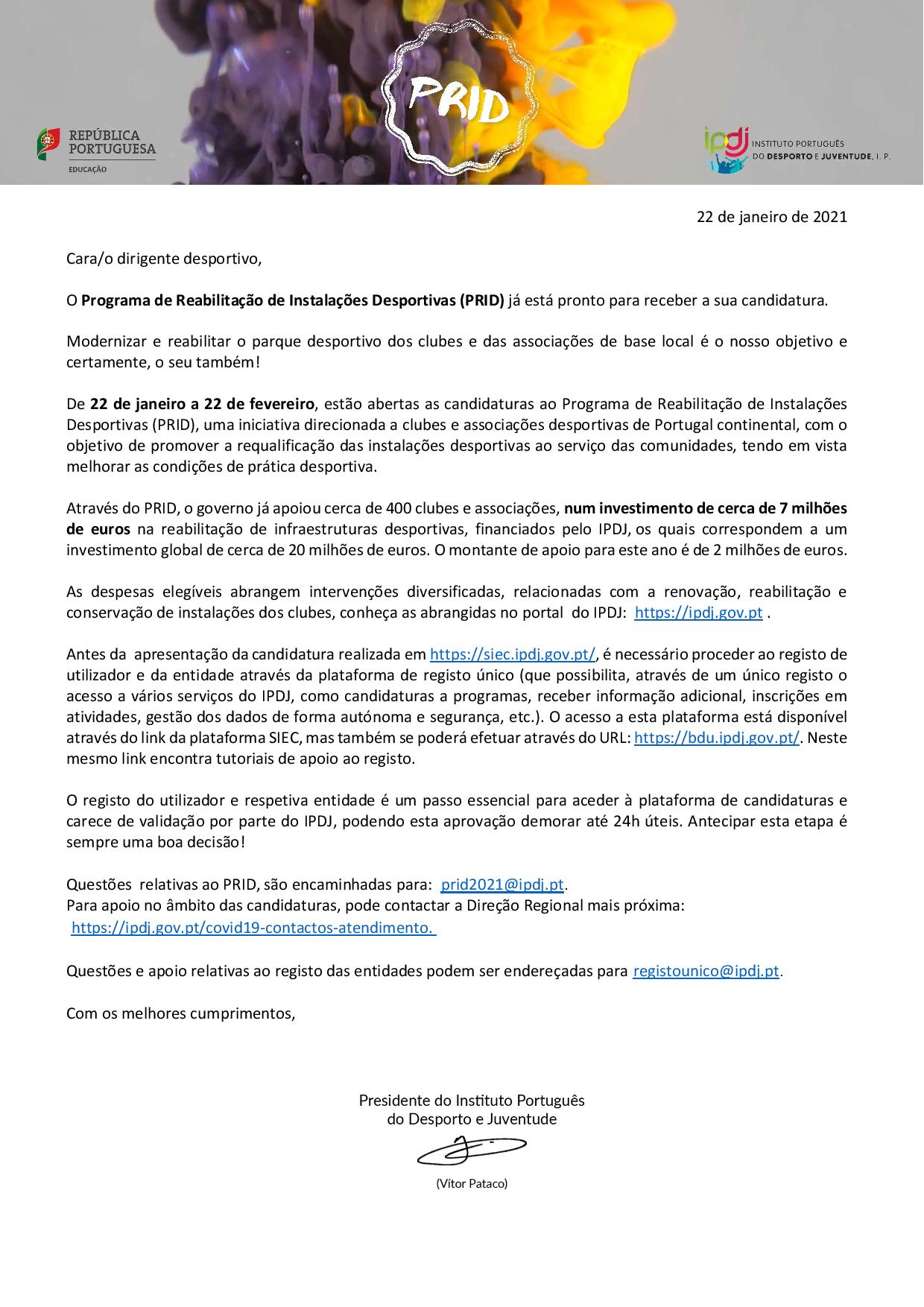 > Programa de Reabilitação de Instalações Desportivas