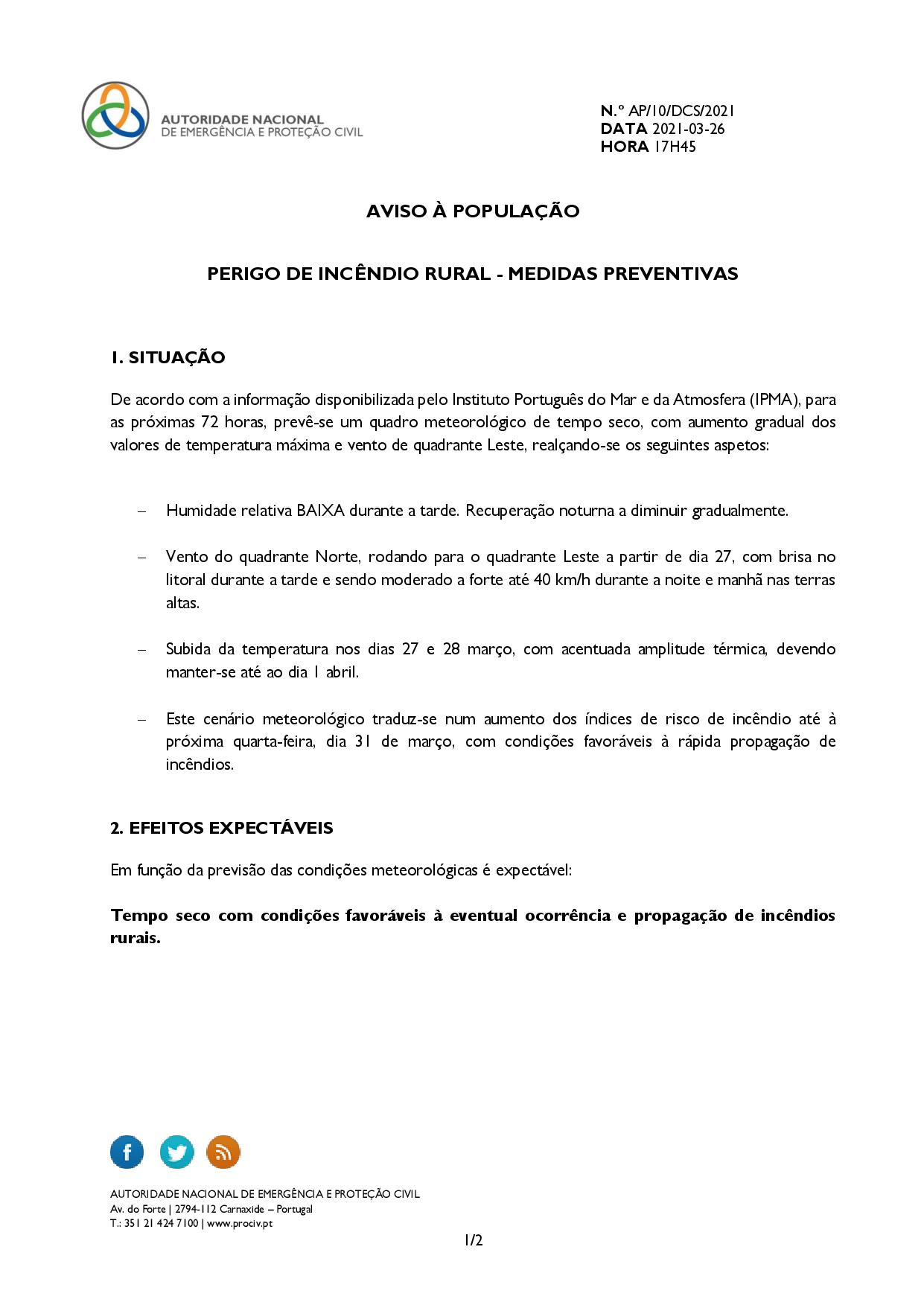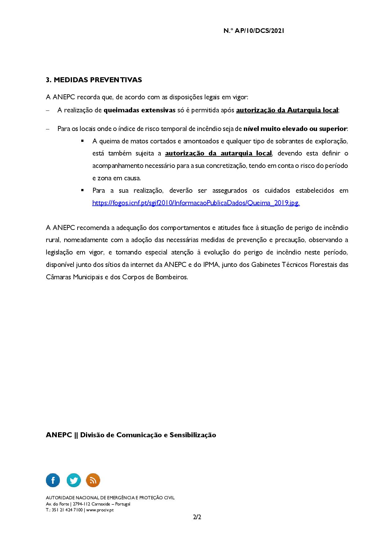 > PERIGO DE INCÊNDIO RURAL - MEDIDAS PREVENTIVAS