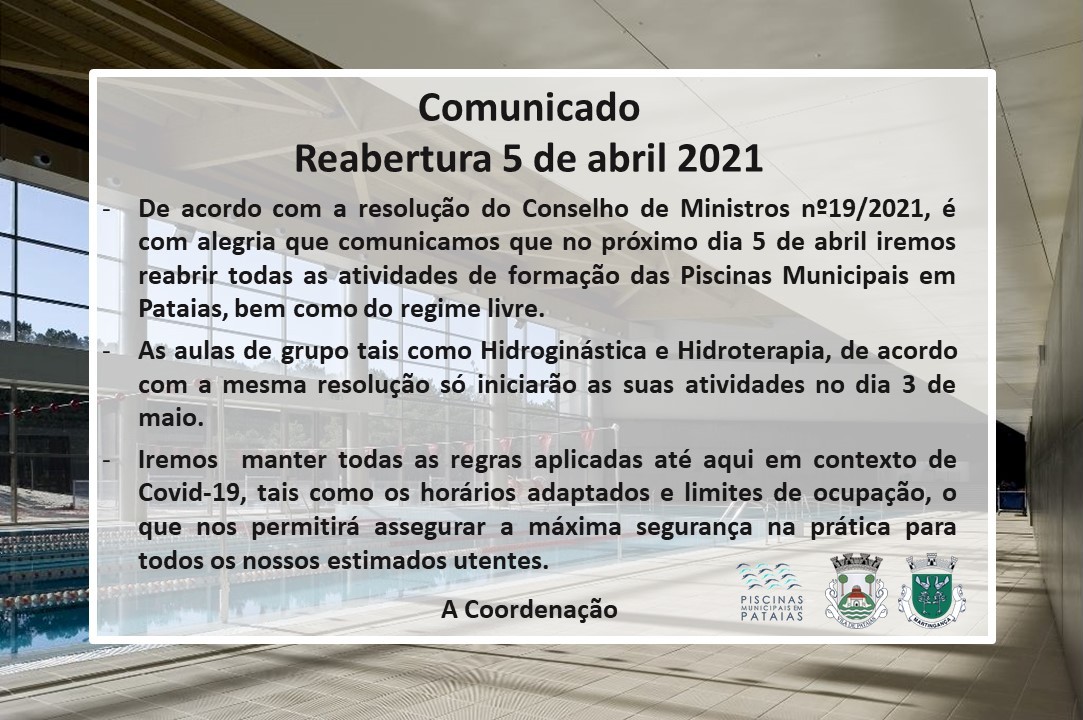 > Reabertura das Piscinas Municipais em Pataias | 5 de abril