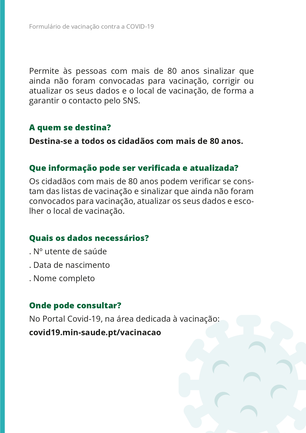 > Vacinação COVID-19 | Formulário de vacinação para os mais de 80 anos