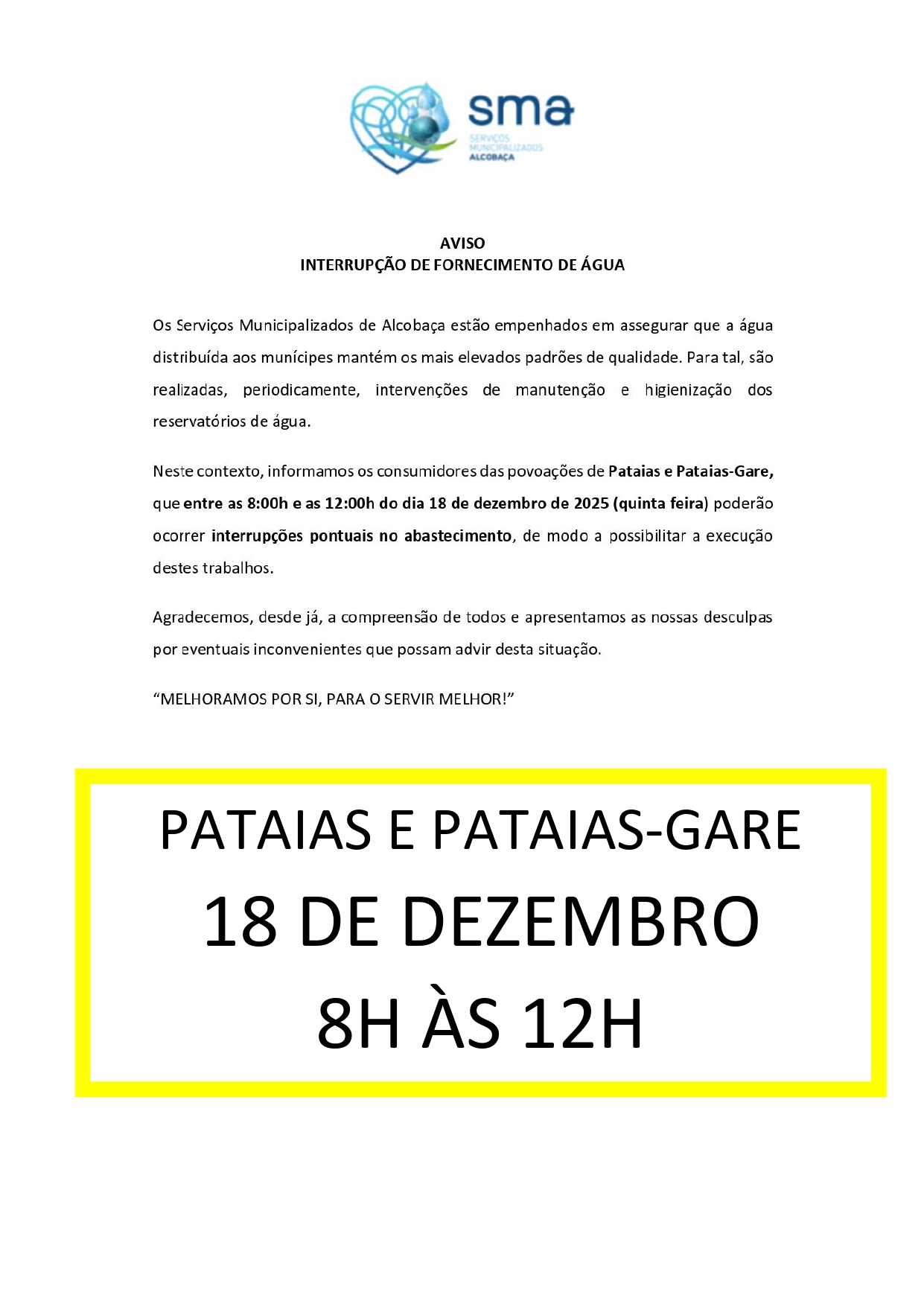 > INTERRUPÇÃO DE FORNECIMENTO DE ÁGUA | 18 DEZEMBRO