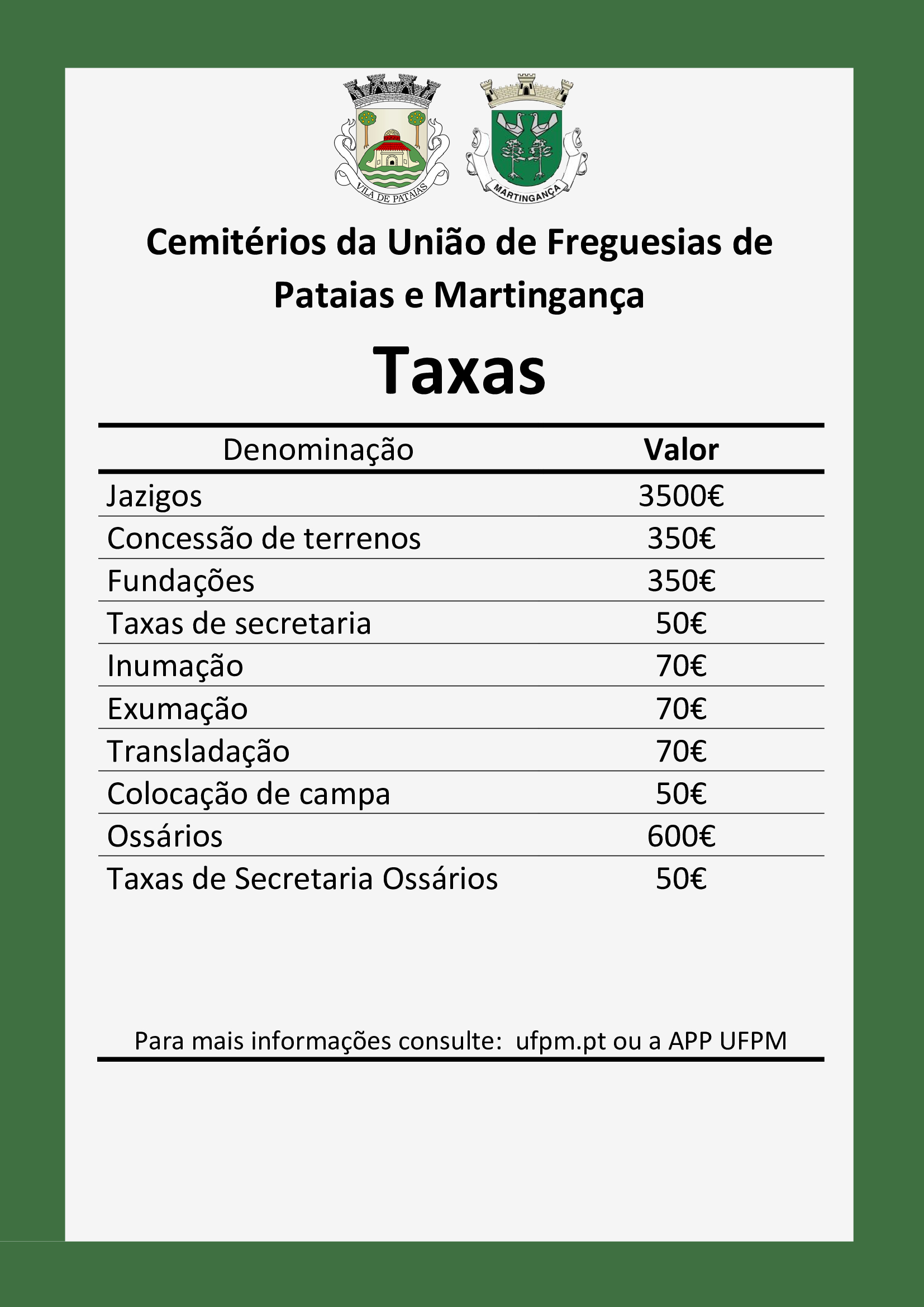 > Taxas Cemitérios UFPM | Atualização