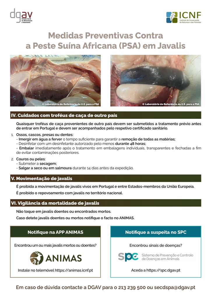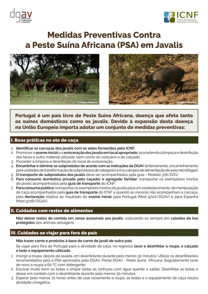 - Adotar boas práticas de caça, tendo em atenção as medidas de biossegurança a aplicar, não só no território nacional, mas também ao se viajar para fora do país para caçar;