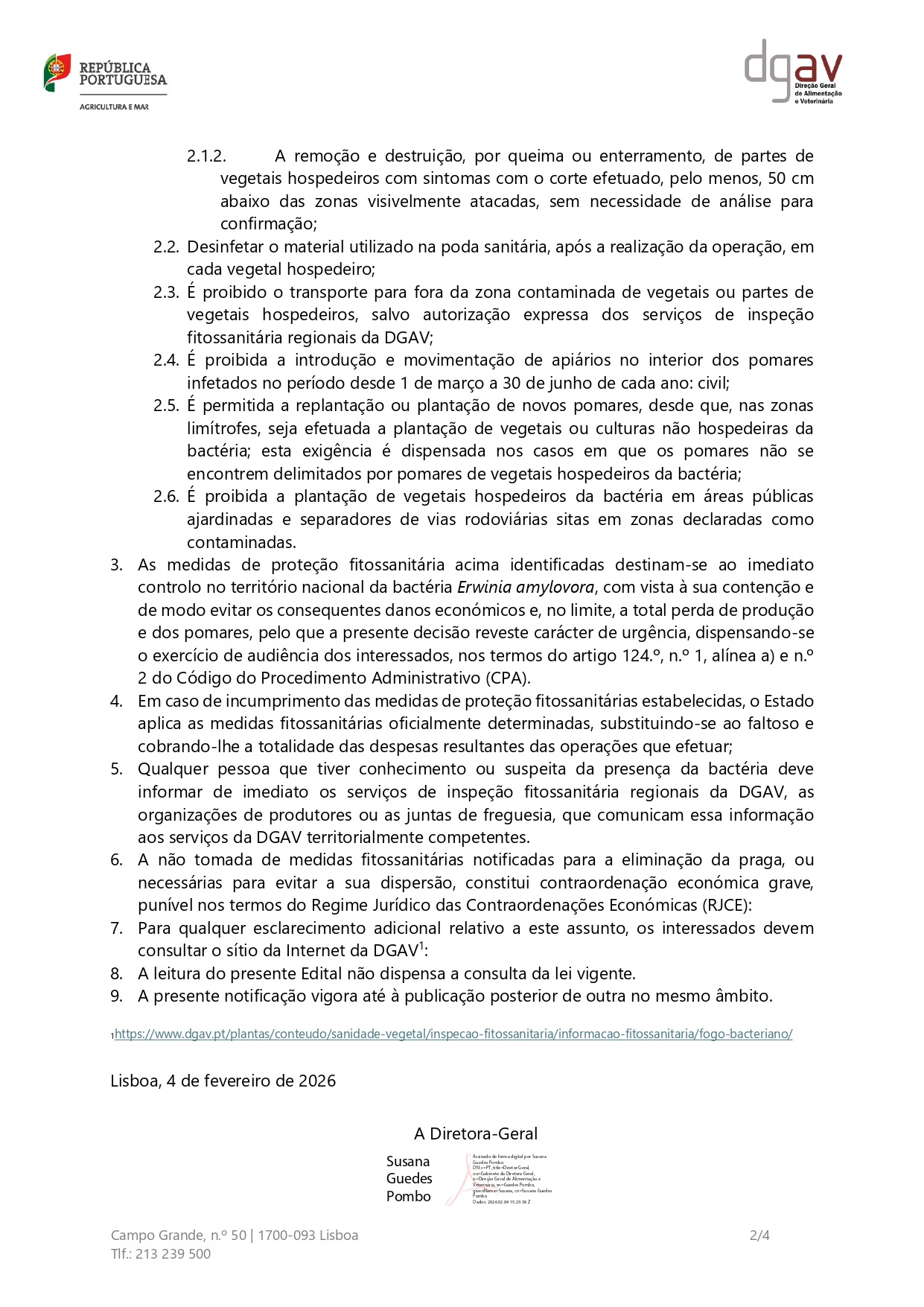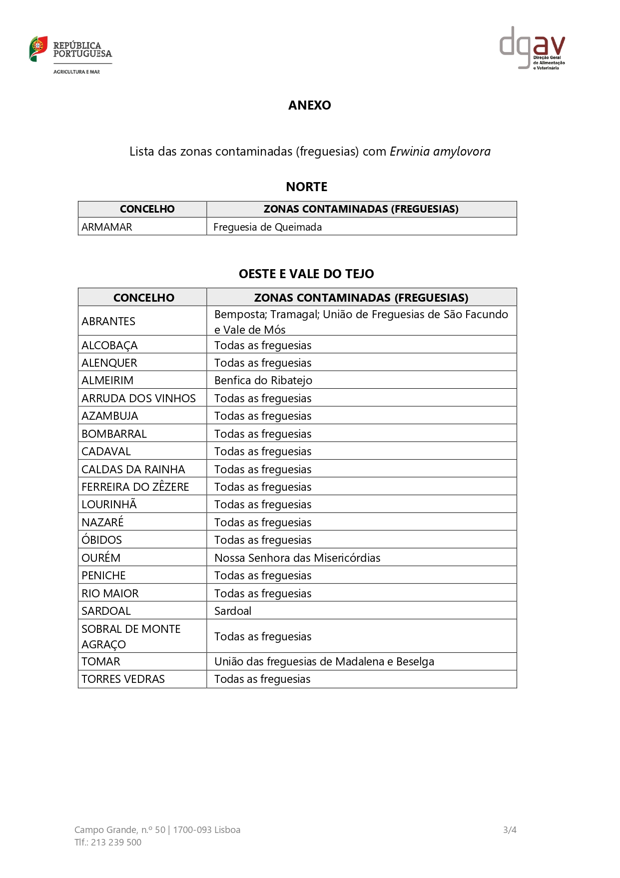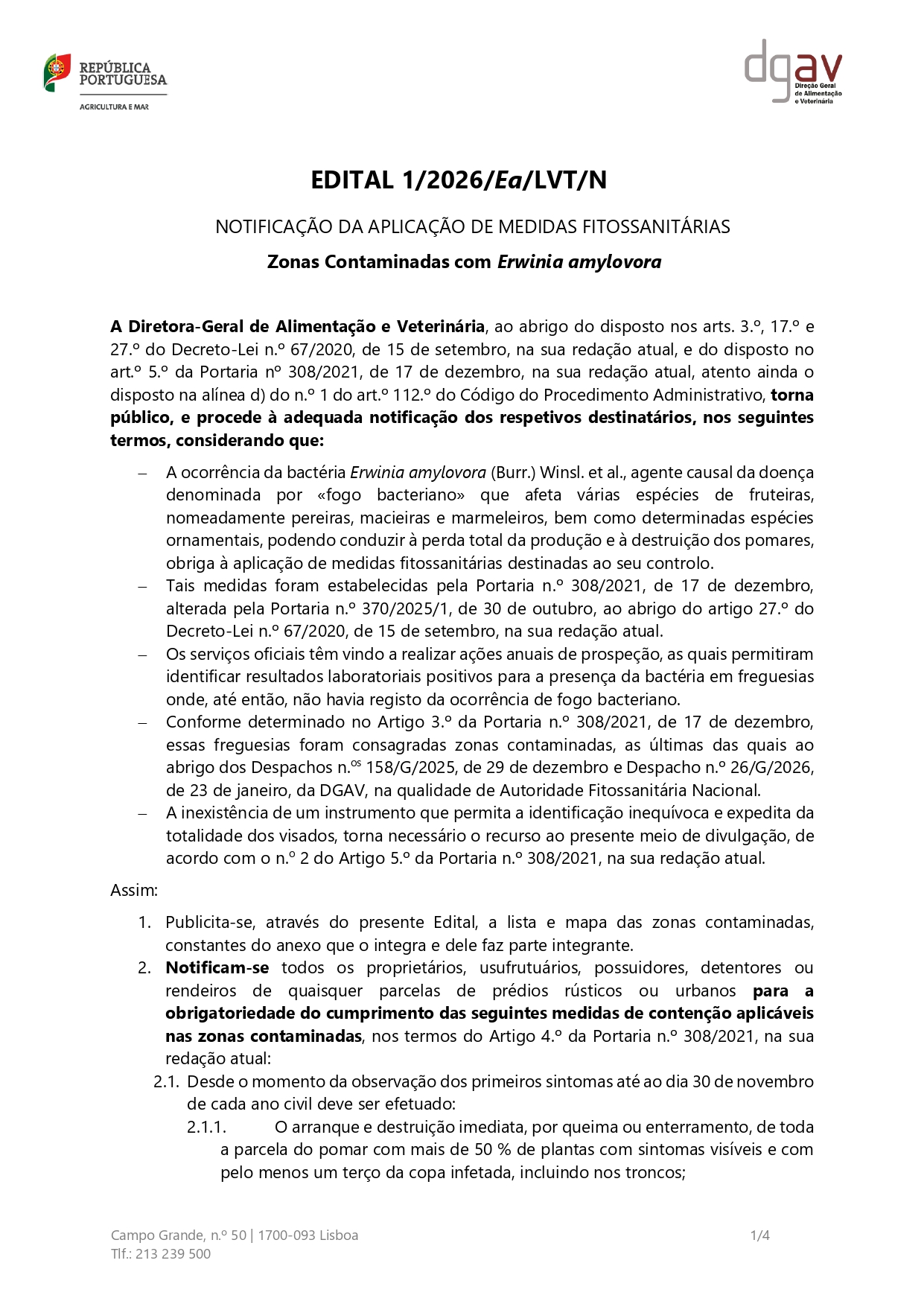 EDITAL | Zonas Contaminadas com Erwinia amylovora