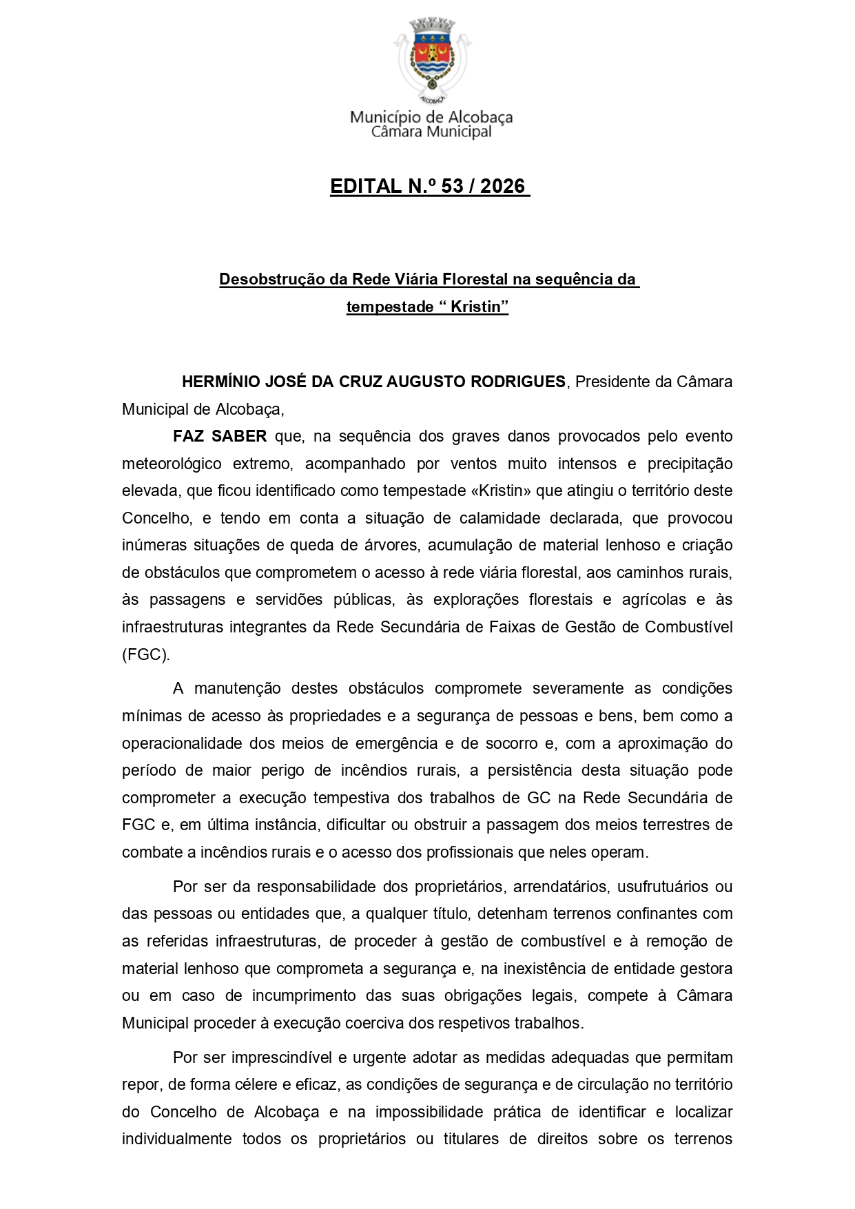 Edital | Desobstrução da Rede Viária Florestal na sequência da tempestade “Kristin”